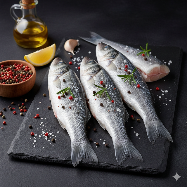 Découvrez notre bar d'élevage entier frais de Grèce, réputé pour sa chair blanche, fine et délicate. Élevé dans les eaux claires de la Méditerranée, ce poisson noble offre une qualité exceptionnelle. Idéal au four, au grill ou en papillote pour une cuisine raffinée et savoureuse.