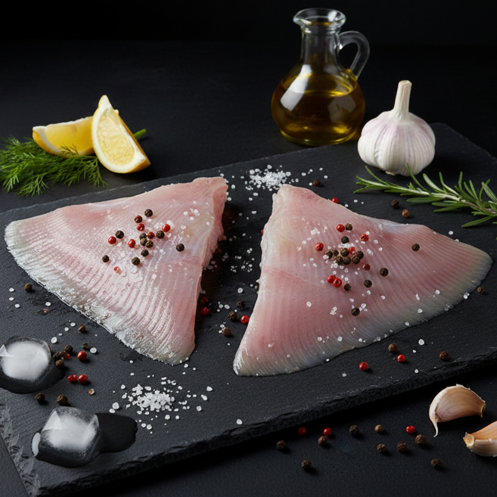 Découvrez notre raie fraîche de l'Atlantique Nord-Est, sélectionnée pour sa qualité et sa fraîcheur exceptionnelle. Sa chair délicate et fine est parfaite pour des préparations simples et savoureuses : poêlée au beurre noir, à la vapeur ou en court-bouillon. Idéale pour une cuisine saine et raffinée.